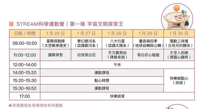 1/26-1/30 宇宙文明探索王(新莊運動中心)